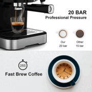 Máy pha cà phê espresso cầm tay KOTLIE, với bơm 20 bar, đảm bảo chiết xuất hoàn hảo và tỏa ra hương thơm trọn vẹn từ hạt cà phê. Động cơ 1100W mạnh mẽ cho phép làm nóng nhanh, giúp bạn có thể thưởng thức cà phê chỉ trong vài phút. Nhờ màn hình cảm ứng LED hiện đại với 3 chế độ hút tùy chỉnh, máy dễ vận hành và tùy chỉnh. Máy đánh bọt sữa tạo ra lớp bọt sữa đặc, mịn cho cà phê cappuccino hoặc latte macchiato. Bình chứa nước dung tích 1,5L và hai bộ lọc cho chế độ ép đơn và ép đôi khiến chiếc máy này đặc biệt thiết thực để sử dụng hàng ngày. Quá trình vệ sinh dễ dàng khiến sản phẩm này trở thành người bạn đồng hành lý tưởng cho ngôi nhà hoặc văn phòng của bạn.